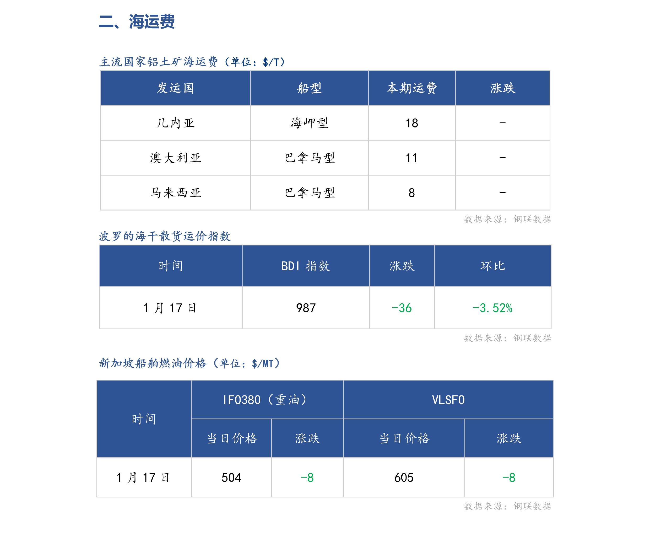 Mysteel日报:1月20日铝土矿及海运费日度价格监控