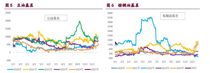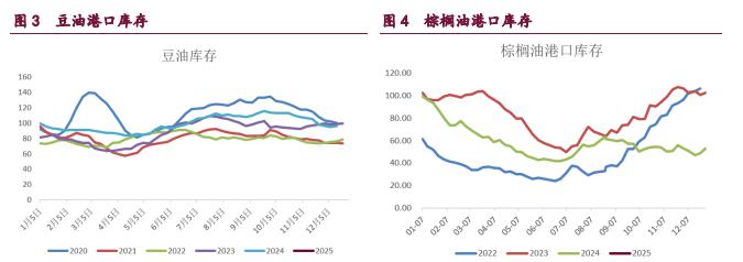 油脂市场波幅明显收窄。在政策真空期,基本面明显转弱对棕榈油期价形成拖累。南马来西亚棕榈油公会的数据显示,马来西亚棕榈油产量下滑幅度不及出口下滑幅度。主要进口国印度炼油协会发布的数据显示,2024 年 12 月份印度棕榈油进口量环比降低 41%,创下 9 个月低点,原因是棕榈油价格上涨至两年半高点,促使精炼厂商增加购买价格更便宜的豆油。