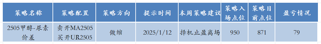 价差判断:上周我们认为甲醇和尿素05合约价差缩小的预期偏强,因此建议未入场者反弹至950以上,可逐步入场做价差缩小,目标850, 止损1000。从本周市场的表现来看符合预期,本周三反弹至980以后大幅回调,因此该策略已入场,由于下周临近春节假期,因此市场部分资金撤离,或将加大波动,建议投资者在850左右或择机止盈离场。