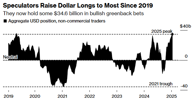 美元周一的大幅下跌似乎让一些投机性外汇交易商措手不及,突显出市场大幅波动的风险。美国假期导致的流动性稀薄加剧了走势,根据美国商品期货交易委员会(CFTC)的最新数据,在特朗普赢得大选后,押注美元走强已成为市场青睐的交易之一,与美元进一步上涨相关的押注最近达到了2019年以来的最高水平。