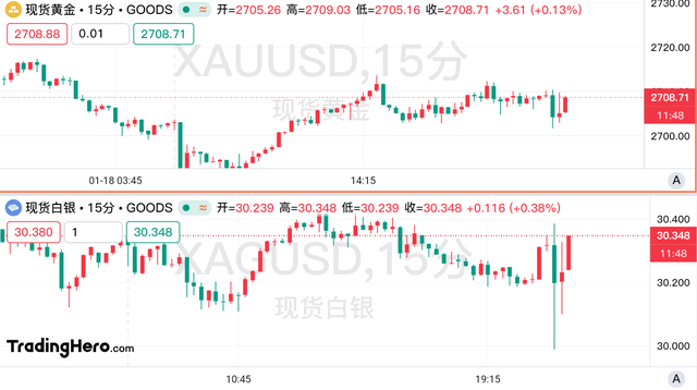 随着对新一轮全球贸易战的担忧有所缓解,市场风险偏好升温。欧洲斯托克600指数大幅上涨并抹去此前跌幅,现涨0.1%。富时中国A50指数期货直线拉升,日内涨0.7%。现货黄金一度短线走低约5美元,随后有所回升。现货白银一度失守30美元/盎司,跌超1%,但截至发稿已几乎收复跌幅。