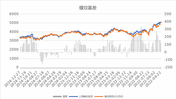 图1:螺纹价格走势(元/吨) | 图2:螺纹基差(元/吨) |