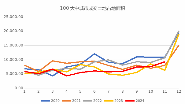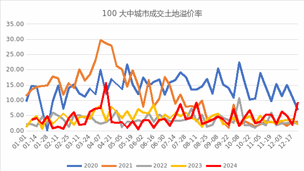 图7:100大中城市成交土地占地面积(万平米) | 图8:100大中城市成交土地溢价率(%) |