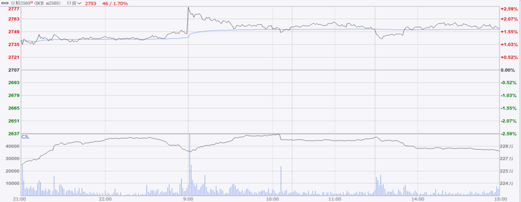 1月14日,豆粕期货主力M2505合约受美国农业部利多报告发酵影响,隔夜CBOT美豆2503合约上涨,带动国内豆粕期货价格上涨。
