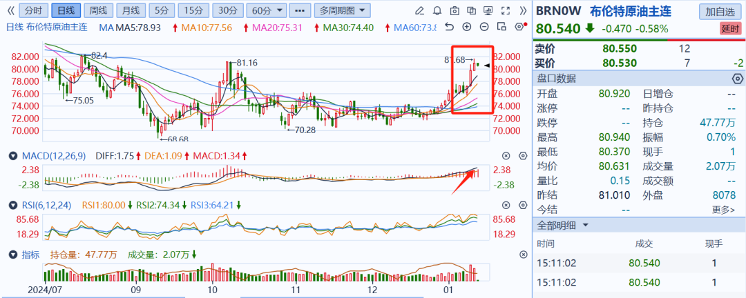MACD指标显示,当前市场多空力量相对均衡,价格方向性不明。投资者需密切关注地缘政治因素和供需关系的变化,以及技术指标的信号,做出合理的投资决策。