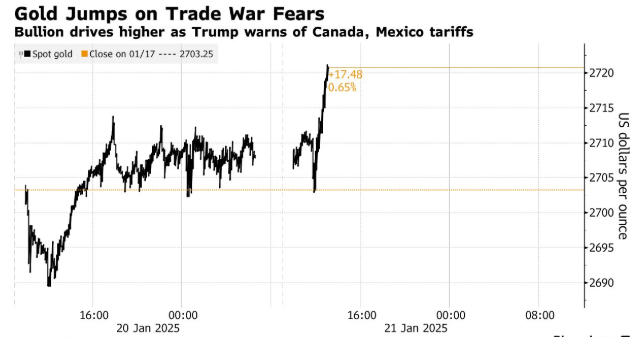 在美联储转向宽松货币政策、地缘政治紧张局势和央行购买的推动下,金价在2024年创下了一系列纪录新高。由于对新总统移民政策的担忧,以及美国与其他国家日益紧张的关系,对避险资产的需求可能会进一步提振黄金。