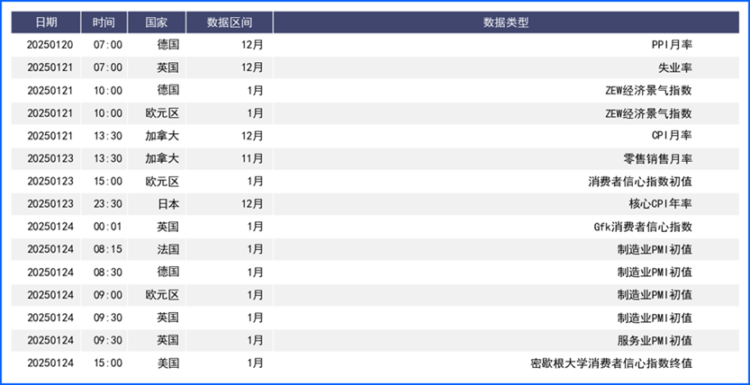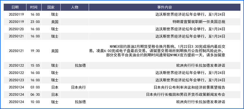 美元前期得益市场对美联储更加谨慎降息,对特朗普关税政策的可能放松表态的双重预期,连续上涨了6周时间。而随着特朗普就职临近,对其关税政策在内的政策方向的不确定性开始上升,美元指数也因此终结此前连涨而技术性回落。展望本周。特朗普即将上台,其就职演讲及后续的一系列举措中势必将为市场提供更多信号,而市场针对这些举措的解读势必会影响美元的后续走势。