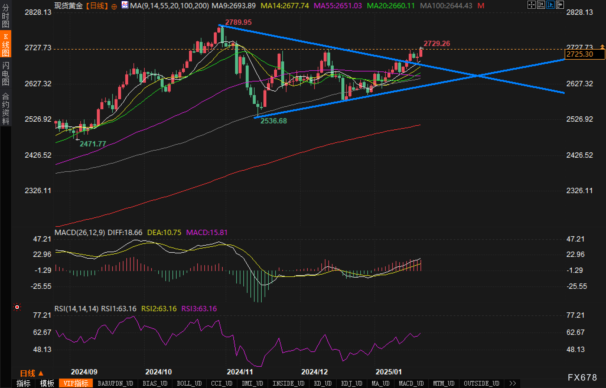 综上所述,黄金价格的走势受到了特朗普保护主义政策和美国通胀数据的双重影响。技术面来看,黄金价格在突破关键阻力后,仍有继续上涨的潜力,接下来的目标将是2735美元和2746-2748美元区域。然而,下行风险仍然存在,尤其是在技术性回调时,支撑位的表现将成为黄金价格未来走势的重要参考。