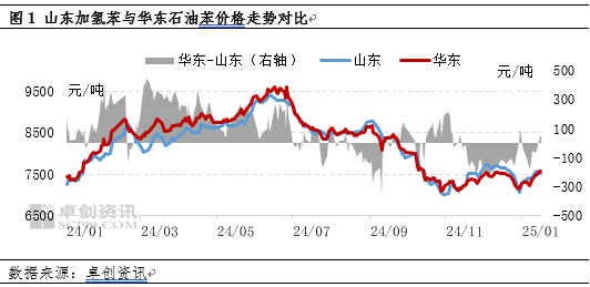 元旦前后,国内纯苯市场先跌后涨,截至1月17日,华东纯苯主流现货参考7575元/吨,较12月底低端7135元/吨累计上涨440元/吨,涨幅6.17%。12月下旬港口持续累库、北方买盘接货低迷等多方面利空作用,纯苯市场出现一波快速下跌。但12月底价格接近年内低位后,买盘入市积极性明显提高,叠加1月份华东纯苯港口库存累库速度放缓,甚至中旬出现逐渐去库,叠加春节前部分下游工厂备货需求增加,市场出现明显低位反弹走势。但中旬后期,市场持续利好支撑不足,行情开始转稳整理运行。