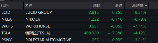 当地时间1月21日,美股新能源汽车股普遍走低,特斯拉跌超4%。而通用汽车则涨近2%,福特汽车涨近1%。