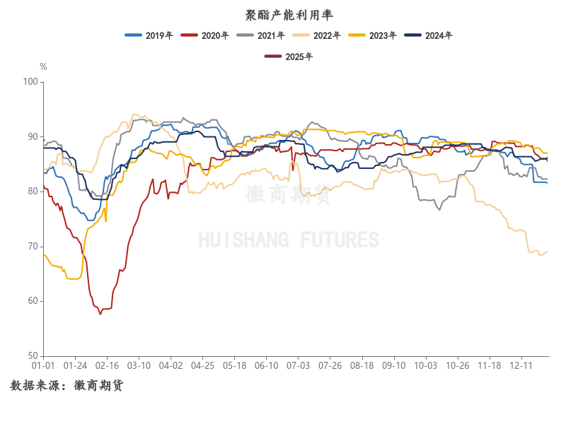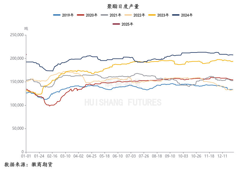 2025年我国聚酯产能增速有所放缓,预估聚酯端新增投产400万吨,对PTA新增需求约342万吨,对乙二醇新增需求132万吨左右,在开工率仍保持韧性的情况下,聚酯产量仍消化不了PTA的产量,但预计能消化乙二醇的产量。