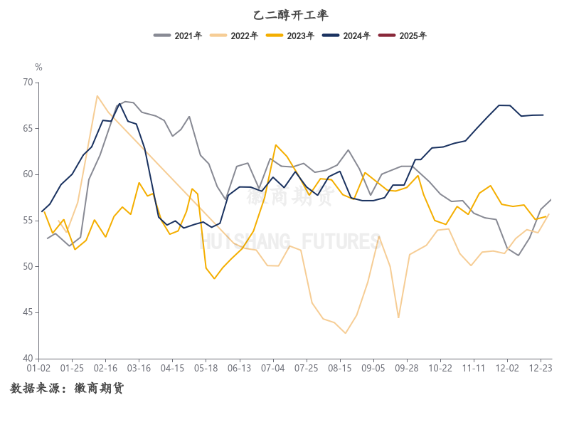需求方面,终端消费一般,但聚酯需求尚可,2024年行业开工率高于2023年,2025年预估聚酯端新增投产400万吨,对PTA新增需求约342万吨,对乙二醇新增需求132万吨左右,在开工率仍保持韧性的情况下,聚酯产量仍消化不了PTA的产量,但预计能消化乙二醇的产量。