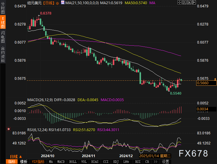 汇通财经APP讯——周三(1月22日),纽元延续了连续两日的跌势,接近0.5650水平。当前市场关注焦点集中于新西兰国内通胀数据和美国总统特朗普的关税计划,这些因素共同塑造了汇市短期内的走势。
