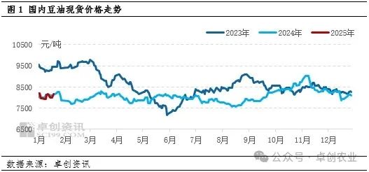 中美关系有缓和迹象:上周五(1月17日)中方和特朗普通话,令人期待两国贸易紧张关系可能改善。美国总统特朗普未在上任首日宣布对中国加征关税,令市场人气受到鼓舞。CBOT大豆受到支撑,基准期约收高3.2%,创下自9月以来的高点,从成本端给豆油市场带来支撑,刺激国内豆油价格上涨。