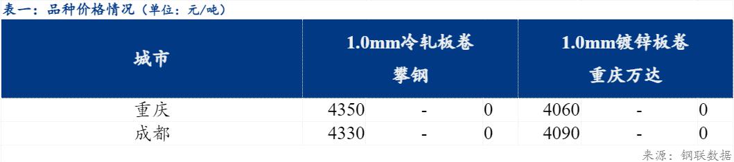 整体来看,当前市场零星成交为主,仓库入库量增加,预计明日西南地区冷轧及镀锌板卷价格或盘整运行。
