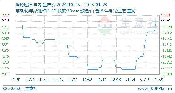 1月23日,生意社涤纶短纤基准价为7318.33元/吨,与本月初(7126.67元/吨)相比,上涨了2.69%。