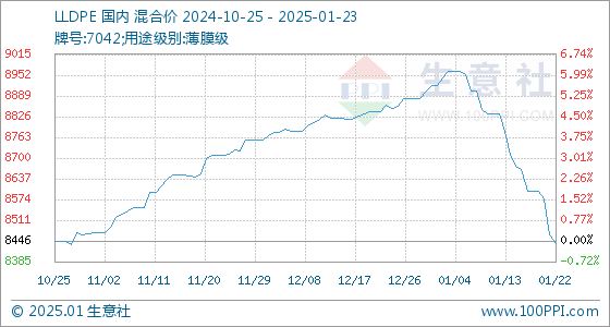 1月23日生意社LLDPE基准价为8441.67元/吨