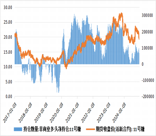 ICE11号原糖:年初在20美分一线止跌反弹,23美分上方压力较大,年中持续回落至17-18美分构筑防线,9月时近月合约出现逼仓行情,但23美分一线再次遇阻回落,年底回至19美分,远期回至18美分以下。美国商品期货交易委员会(CFTC)最新报告显示,截至12月24日当周,ICE原糖期货+期权总持仓为1092684手,较前一周增加20460手。投机多头持仓167330手,较前一周减少246手;投机空头持仓212515手,较前一周增加10203手;投机净空持仓为45185手,较上周增加10449手。