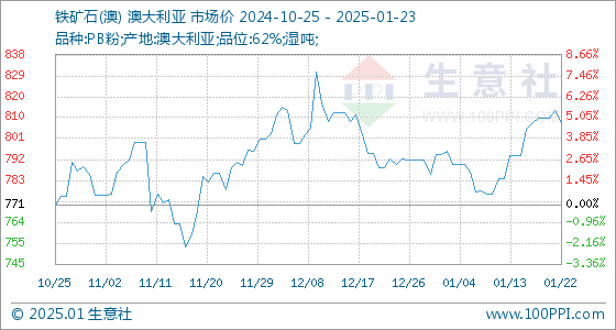 1月23日生意社铁矿石(澳)基准价为808.33元/吨