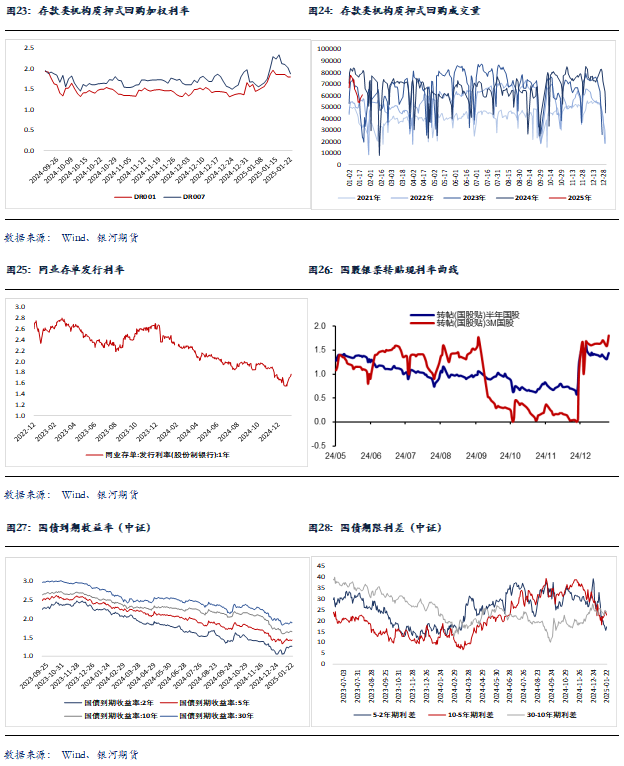 年前降准可能性下降,资金面偏紧态势或将有所延续,从而对国债收益率下行构成一定约束。不过,从基本面角度来看,当前国内通胀读数偏低,私人部门信贷需求偏弱的情况下,市场走势也暂难反转。