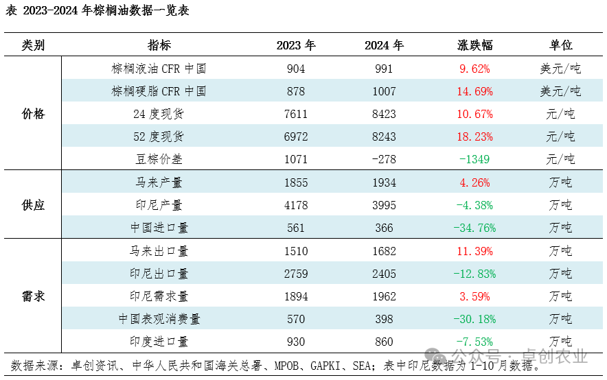 棕榈油的基本面对价格支撑仍存,预计2025年价格重心同比上移