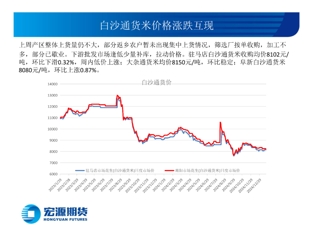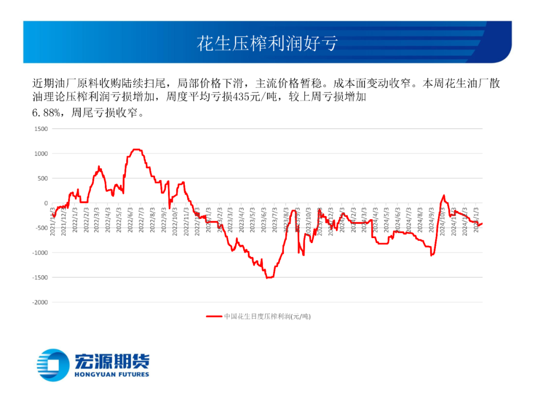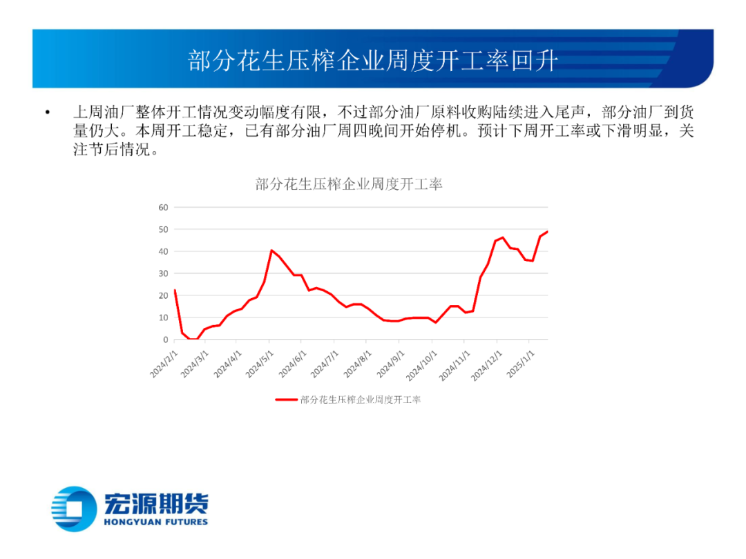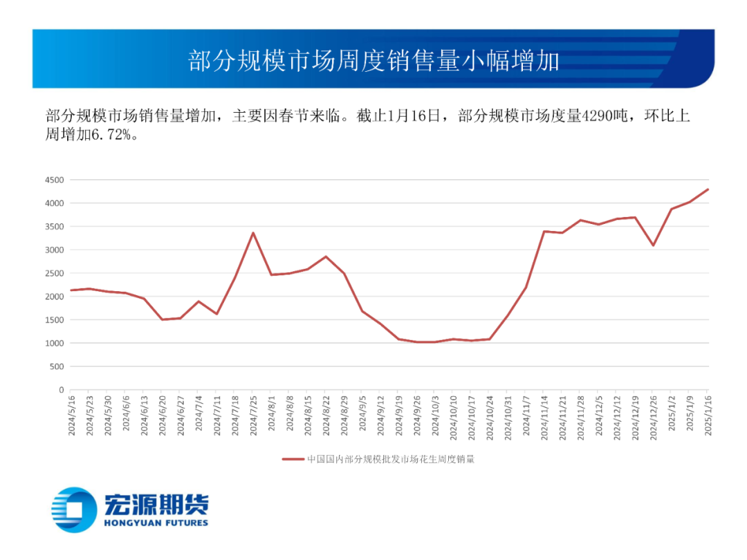 花生销售高峰期已过,剩余库存不多,加上年底需求较强,贸易商和农户有一定惜售心理,现货价格小幅走高。另外,豆粕和豆油价格上涨,也在一定程度上支撑了花生价格。但春节过后,继续上涨的难度较大,8200阻力较大。