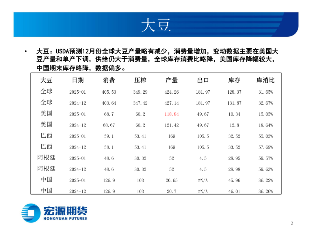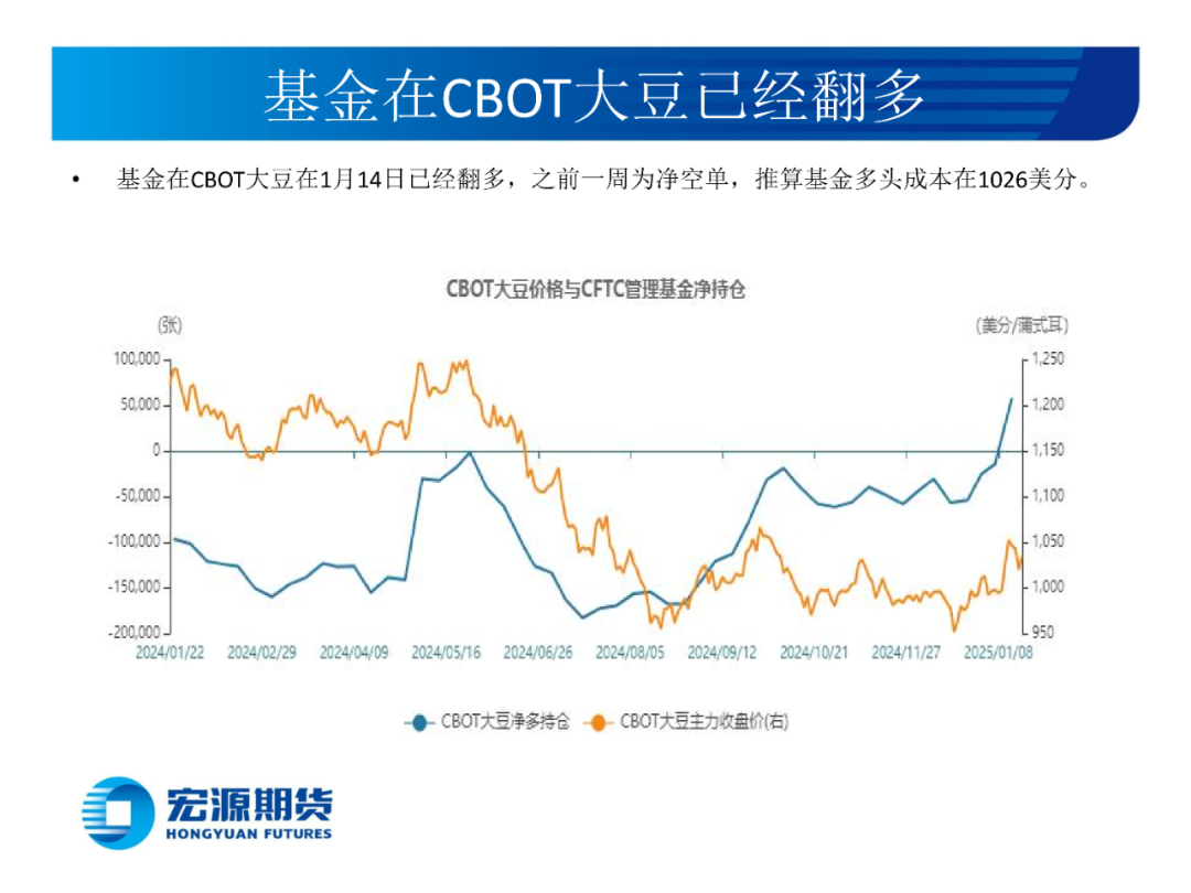 USDA调低美国大豆产量后,CBOT大豆暂时企稳,站稳10美元后是多空分水岭,南美大豆今年丰产基本确定,市场依然在消化供给增加压力,期货市场多空基本平衡,等待天气因素或关税政策改变;下跌空间不大,企稳震荡上行有一定空间。