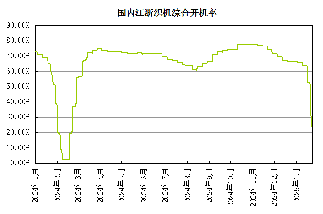 春节气氛渐浓,终端备货阶段性结束,下游逐步停产放假,多数客户前期已备货,节前采购需求日益清淡。江浙织造行业开工下滑至25%以下,后续仍有下调空间。
