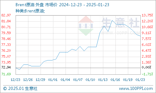 特朗普上任后此前制裁可能会推翻,其主张增产美国原油、加征关税及贸易风险等政策倾向利空油价,原油短线回调。1月22日,美国WTI原油期货主力合约结算价报75.44美元/桶,布伦特原油期货主力合约结算价报79.00美元/桶。
