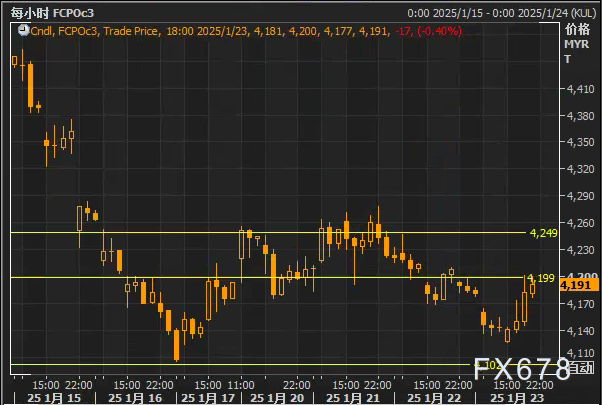 汇通财经APP讯——周四(2025年1月23日),棕榈油期货价格连续第二个交易日下跌,受限于其他植物油市场的疲软。马来西亚Bursa Derivatives交易所的4月交割棕榈油期货(FCPOc3)下跌17马币(0.4%),收于4,191马币(约合943.49美元)每吨。