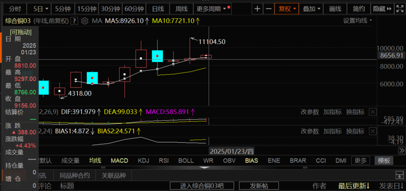 2024年,铜价以整体的上涨结束了自己的征程,其中,伦铜年线涨幅为2.6%,沪铜年线涨幅为6.96%,SMM1#电解铜年涨幅为6.59%。虽然最终的铜价涨幅没有贵金属那么耀眼,但是铜价2024年的波动幅度可谓是跌宕起伏!受宏观暖风、铜矿供应紧张预期不断增强、电解铜减产预期上升、AI用铜消费增加预期和COMEX铜挤仓等因素推动,三大交易所的期铜价格纷纷在2024年5月刷新了历史新高!以沪铜2024年的波动幅度为例,其最高触及88940元/吨,最低也曾跌至67380元/吨,两者之间差值高达21560元/吨!如此剧烈的波动幅度对铜下游消费来说算不上友好。进入2025年,铜价目前2025年的年线整体处于上涨态势,曾在2024年铜市大戏中唱主角的宏观面和基本面今年又将有怎样的表现?