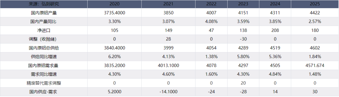 用万科和保利地产的历史销售数据作为竣工数据的先导指标可以获得在领先6-7期的维度上相关性达到了0.78以上,由此作为基数的预测数据将今年竣工数据预期落在了-9%左右;25年竣工对铝消费的拖累在-2.7%。