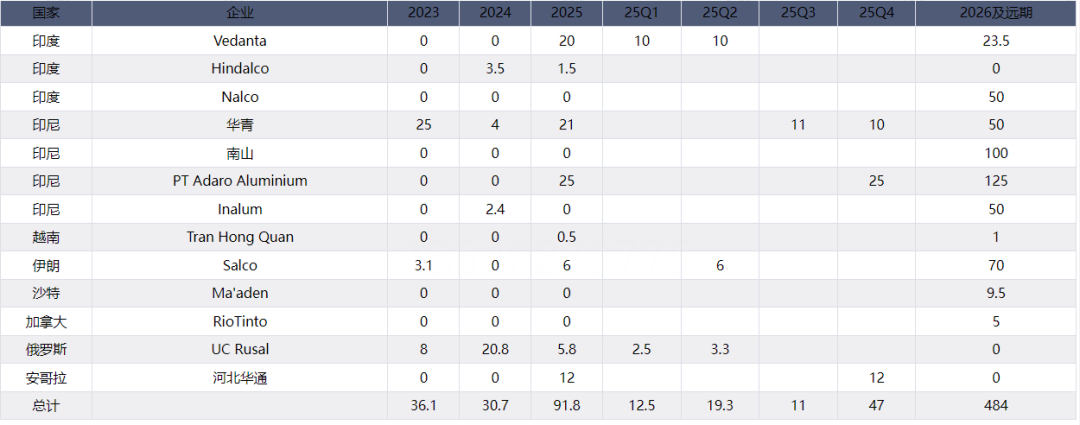 另一个主产区印尼则禁止铝土矿出口,预期将本国的氧化铝产能与铝土矿深度绑定。
