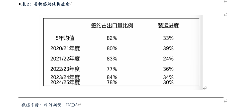 1、美国:供应端美棉检验基本进入尾声,市场关注点逐渐向需求端转移;需求端当前销售进度环比虽有改善但整体签约量仍然处于历年同期较低位置。