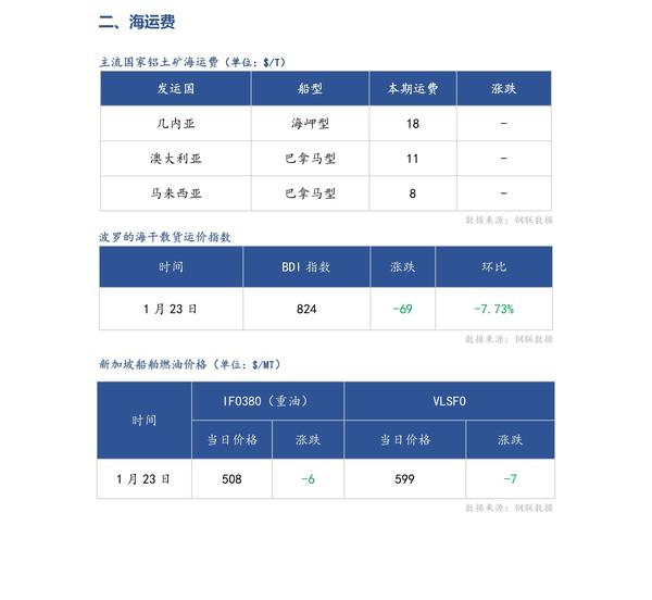 Mysteel日报:1月24日铝土矿及海运费日度价格监控