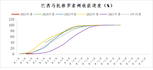 目前巴西大豆进入收获期,主产州马托格罗索州当前收获进度偏慢,截至25年第三周,收获进度仅为1.41%,明显低于近年平均水平。阿根廷播种接近尾声,暂时没有明显隐患,播种进度处于近3年最高位。结合到近期豆粕的反弹,大部分内容来自巴西天气的困扰,当地降水偏多,影响了收获进度。结合NOAA的天气预测图来看,目前南美地区整体气温偏高,阿根廷地区干旱较为明显,土壤中并无太多水分;巴西虽也伴随着高温,但是降雨充沛,土壤墒情较好。观察天气预测图可以发现,月底南美洲降雨区域或将南移,届时巴西降雨减少,对收获进程影响将减弱,而阿根廷将迎来降雨,缓解当前土壤干旱情况。目前南美的天气扰动虽存,但暂时未有迹象表明丰产预期会被改写,需要观察后续阿根廷干旱程度及巴西收获进度能否赶上。
