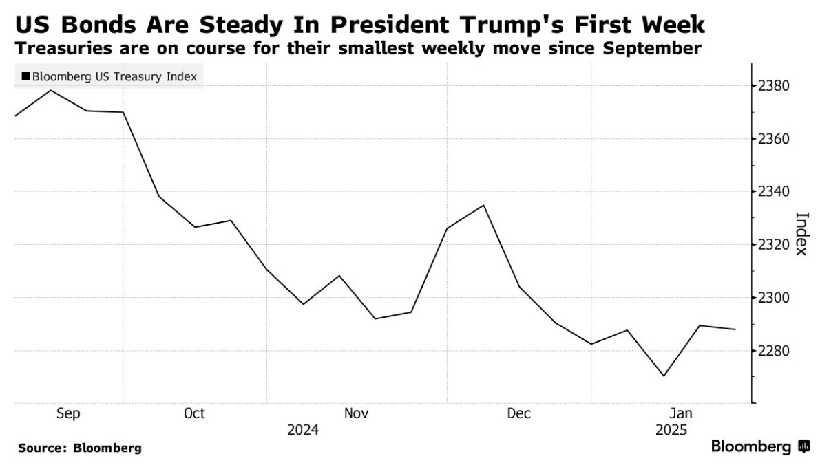智通财经APP注意到,在特朗普第二任总统任期的第一周结束时,美国债券价格表现与上任时基本相同。
