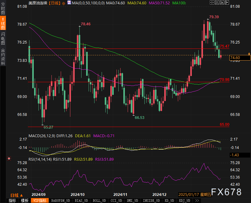 整体来看,本周原油市场受到政策变动、供应和需求矛盾的综合影响,价格显著下跌。特朗普的能源政策、OPEC的潜在回应以及库存变化共同构成了本周市场的主要驱动力。技术面显示,短期内原油价格仍面临下行压力,关键支撑位将受到市场密切关注。