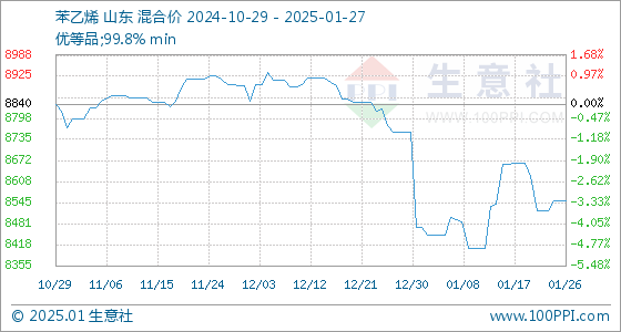 1月27日生意社苯乙烯基准价为8550.00元/吨