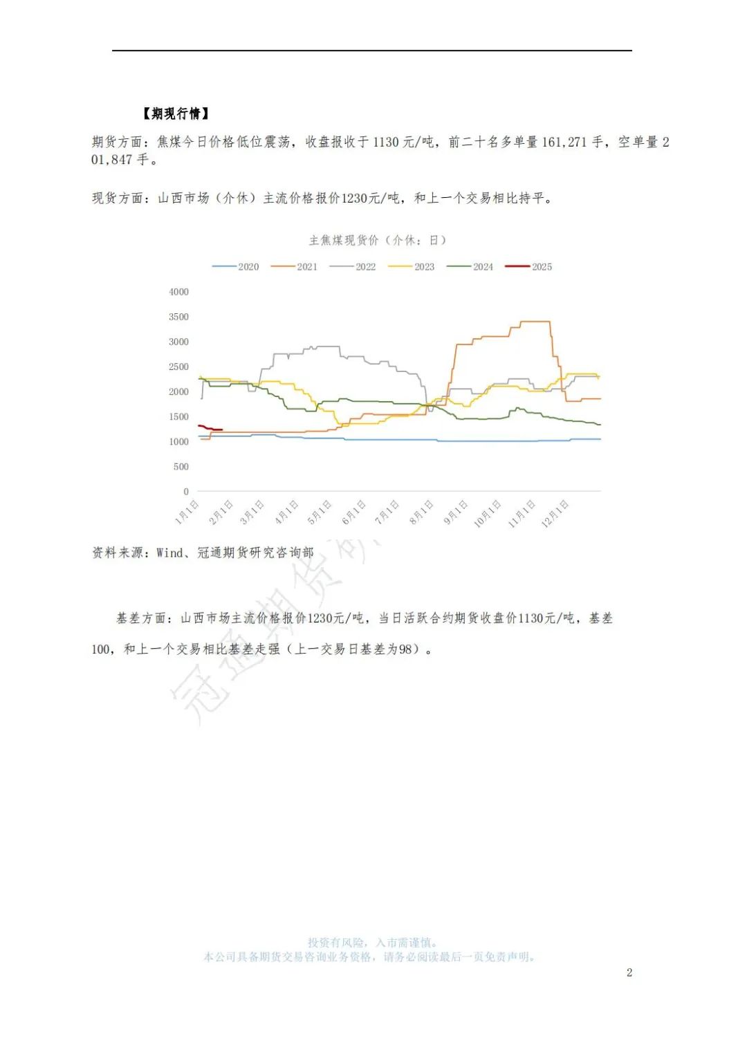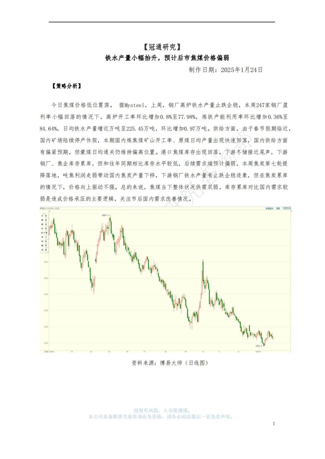 冠通研究--焦煤策略:铁水产量小幅抬升,预计后市焦煤价格偏弱