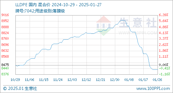 1月27日生意社LLDPE基准价为8430.00元/吨