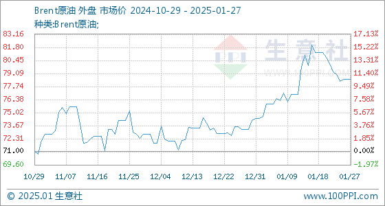 1月27日生意社Brent原油基准价为78.50美元/桶