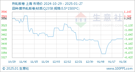 1月27日生意社热轧板卷基准价为3438.00元/吨