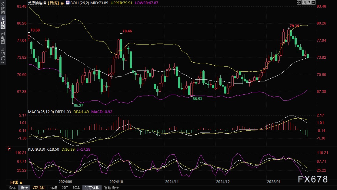 汇通财经APP讯——周一(1月27日)亚市早盘,国际油价延续震荡下跌,美原油一度下跌逾1.233%至73.67美元/桶,为1月9日以来新低,尽管上周五美元指数大跌一度给油价提供了短线反弹机会,但此前美国总统特朗普宣布提高国内原油产量的全面计划,同时要求OPEC采取行动降低原油价格;这仍明显压制原油市场人气,上周美原油周线下跌3.58%,为八周来最差表现。