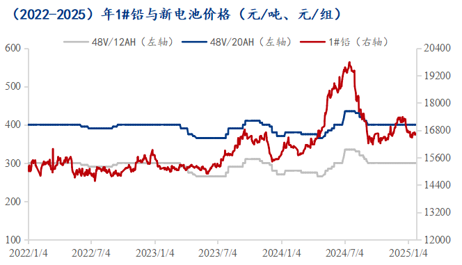 今日铅锭现货价格较昨日下跌50元/吨报16600元/吨,新电池成品发货停滞。