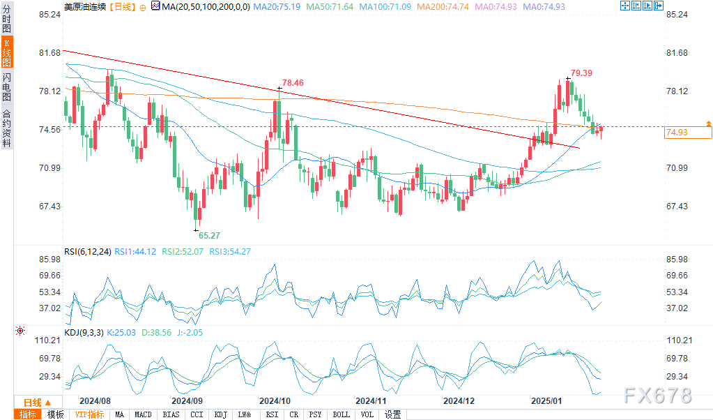汇通财经APP讯——原油价格2025年的上涨趋势已经更深地逆转到更广泛的看跌轨迹中去,向74美元的价格区域下跌3.7%。在联邦公开市场委员会本周召开之前,市场目前正关注关键支撑位。