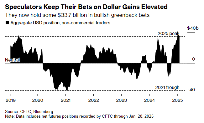自特朗普当选以来,仅关于关税的讨论就已经让美元受益。上周是美元自去年11月中旬以来表现最好的一周,彭博美元现货指数上涨了近1%。与此同时,美国股市上周五下跌,汽车制造商和在中国市场有业务的公司领跌。债券交易员则需要在市场的风险上升和通胀担忧之间做出权衡。