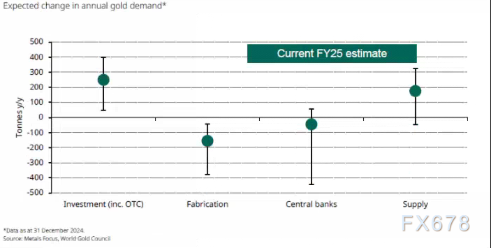 世界黄金协会高级市场分析师Louise Street表示:“到2025年,我们预计各国央行将继续占据主导地位,黄金ETF投资者也将加入竞争,尤其是当利率下降但仍不稳定时。地缘政治和宏观经济的不确定性应该是今年的主流主题,支持对黄金作为财富储存和对冲风险的需求。”