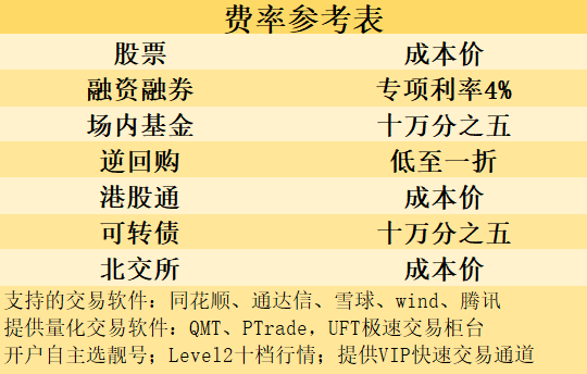目前大多数券商都有提供VIP快速交易通道,但是对客户的资金量有一定的要求,一般50万资金量可以提供VIP快速交易通道,极少部分券商没有资金要求,支持开户即可提供VIP快速交易通道。具体的费率表附在文末作为参考,欢迎点击我的头像详询