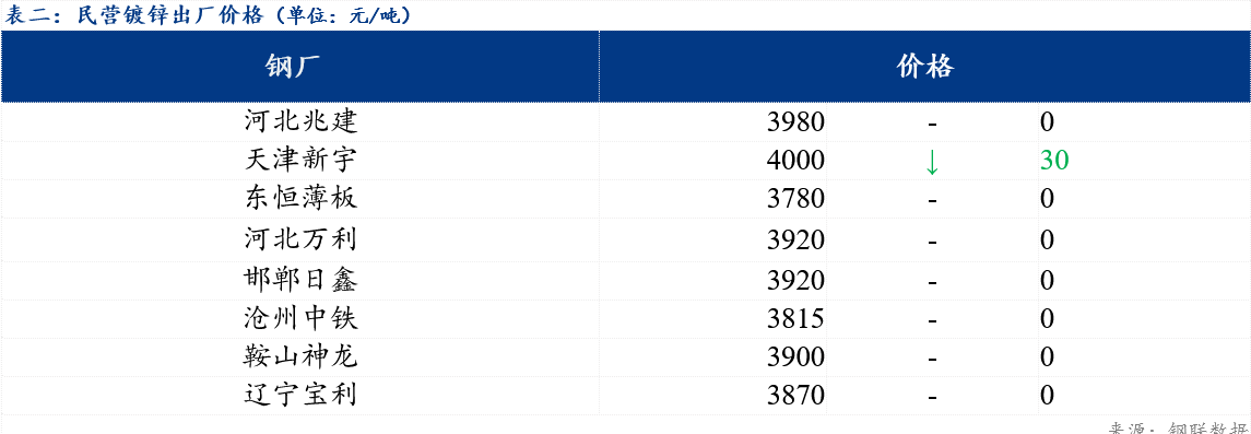 今日北方民营钢厂镀锌出厂指导价在3780元/吨-4000元/吨。